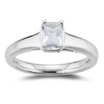 This urbane White Sapphire Ring displays a radiating emerald-cut White Sapphire, accentuated with fourteen tantalizing round Diamonds prong set in 14K White Gold. Approximate Diamond Weight: 0.10 Carats. Approximate Gemstone Weight: 0.50 Carats. A mesmerizing ring designed to win her heart. ,METAL:14K Gold,ACTUAL METAL:14K White Gold,RHODIUM:Yes,WIDTH:2.8 mm,NUMBER OF DIAMONDS:14,SHAPE:Round,MINIMUM COLOR:H,MINIMUM CLARITY:SI,MINIMUM CARAT TOTAL WEIGHT:0.10,SETTING STYLE:Prong Setting,GEMSTONE:White Sapphire,SHAPE:Emerald,AVERAGE COLOR:Transparent White,AVERAGE QUALITY:AA,MINIMUM CARAT TOTAL WEIGHT:0.50,GEMSTONE DIMENSIONS:6x4 mm,SETTING STYLE:Prong Setting,NUMBER OF STONES:1,COLOR:White,PRODUCT TYPE:Fashion Ring,GENDER:Womens,MATERIAL:Gemstone-White Diamond